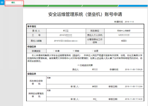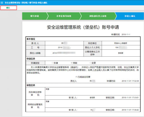 4、运维安全管理系统管理员办理后由申请人确认结束流程。