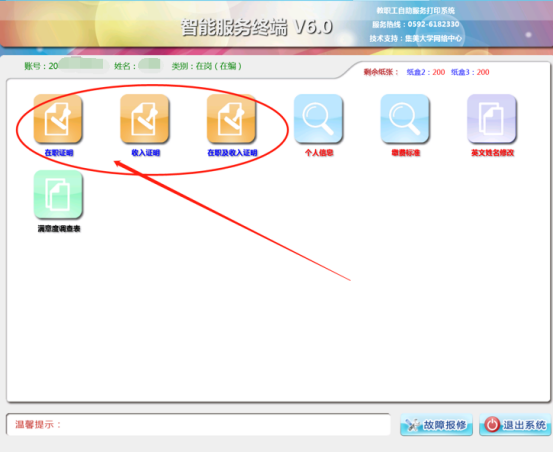 【打印项目】登录成功后,会根据您的类别显示相应的打印项目。点击要打印项目的图标。