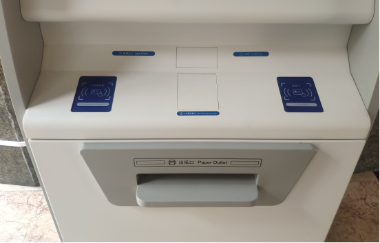 【取走文件】在提示打印成功后,请到刷卡感应区下方的取纸口,领取文件。