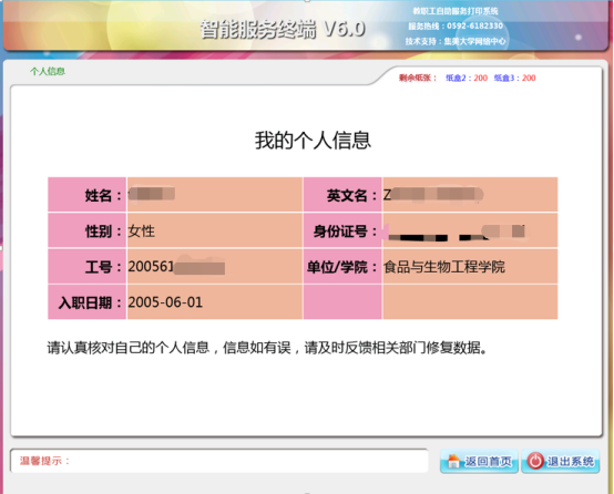【个人信息】请认真核对自己的个人信息,信息如有误,请按照联系相关业务负责部门。